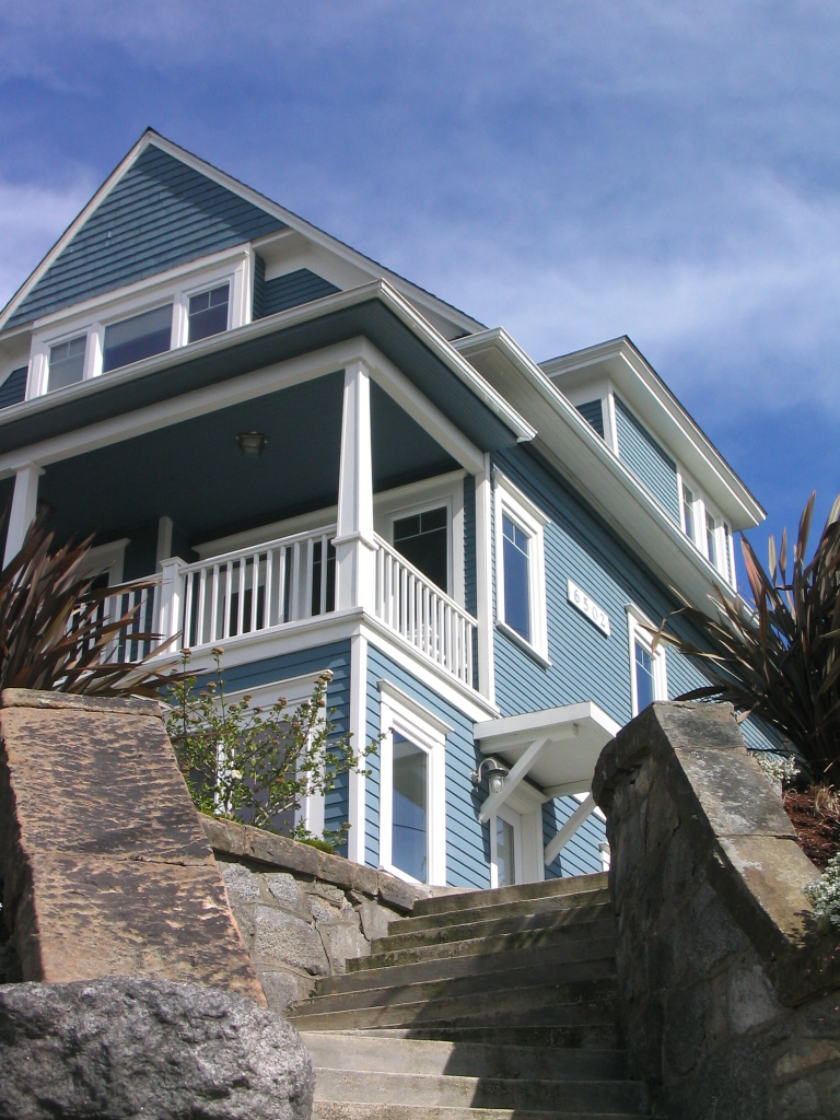 The project included lifting the house two feet, installing a new foundation, and remodeling both the interior and exterior. The floor plans were reconfigured, and new windows were added to enhance the view. A steel moment frame was also designed on the view-facing side to meet earthquake and wind load requirements.